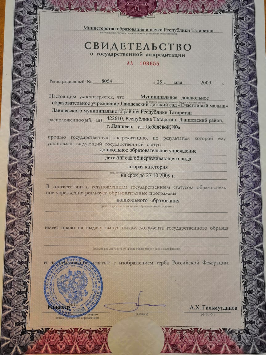 Лицензия МБДОУ Лаишевский детский сад "Счастливый малыш"