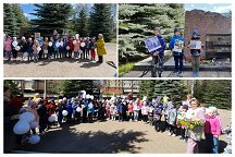 После праздничного мероприятия прошла акция «Бессмертный полк», в которой приняли участия дошкольники всех возрастных групп. Воспитанники построились в колонны и с фотографиями своих родственников-фронтовиков прошли по территории детского сада.