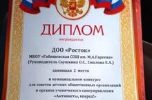 ДОО "РОСТОК" МБОУ "Габишевская СОШ им. М.А.Гареева" заняла 2 место в муниципальном конкурсе для советов детских общественных организаций и органов ученического самоуправления "Активисты, вперед!". Поздравляем! Желаем дальнейших побед!