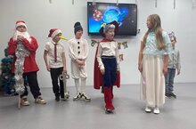 У обучающихся начальных классов были приключения у Новогодней ёлки с Дедом Морозом, Снегурочкой, Бабой-Ягой.