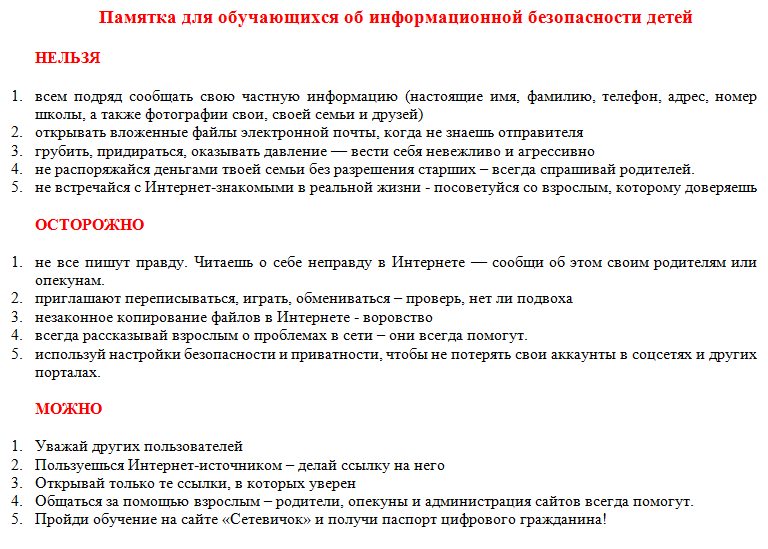 Памятка родителям для защиты ребенка от нежелательной информации в сети