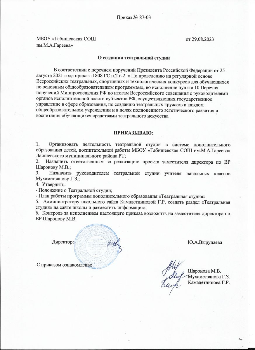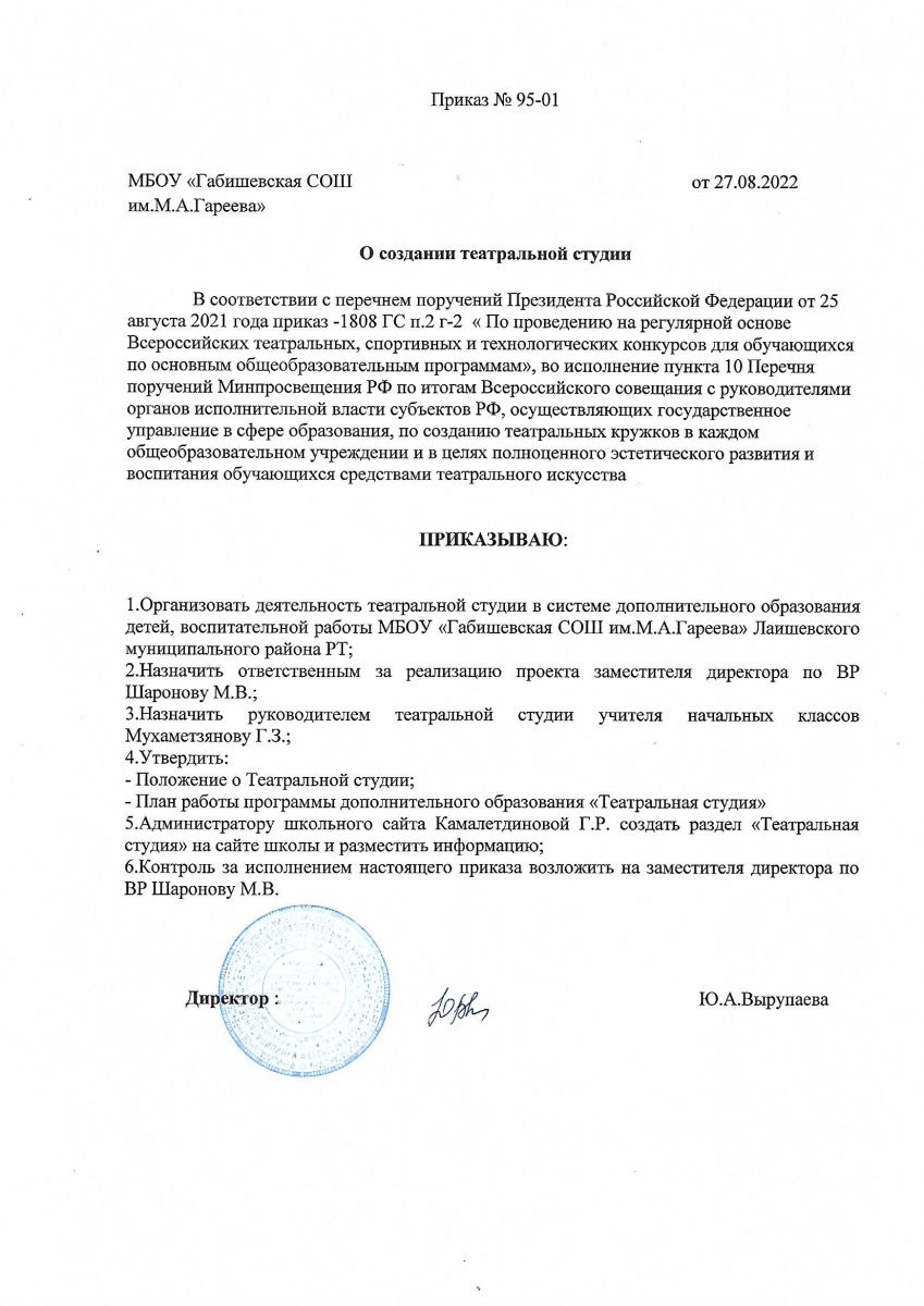 Приказ о создании Театральной студии Фантазёры_2022-2023