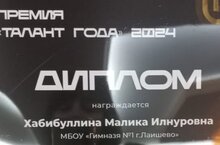 образования и науки Республики Татарстан.Среди победителей Премии ученица 7А класса Хабибуллина Малика.
