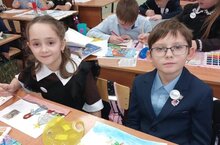 На фото - 1Б класс в процессе написания писем солдатам и с результатами работы.