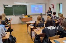 Сегодня педагоги и ученики 9а и 9б классов приняли участие во Всемирной акции "Татарча диктант"