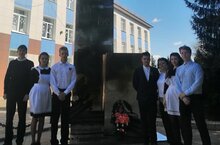 В преддверии Дня Победы учителя и учащиеся нашей Гимназии почтили память погибших в Великой Отечественной войне. На торжественном митинге прозвучали гимны РФ и РТ, погибших почтили минутой молчания, учащиеся 11 класса по традиции возложили венок на обелиск победы.