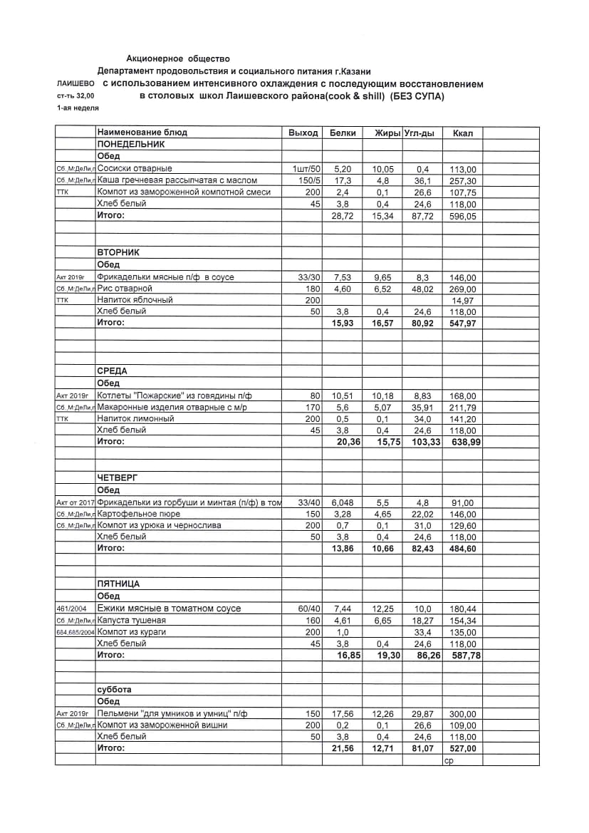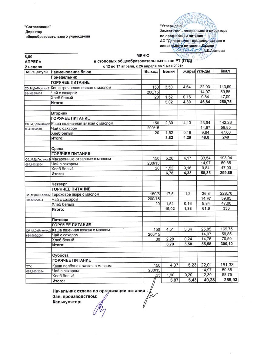 Меню на апрель. Нечетная неделя для 1-4 классов.