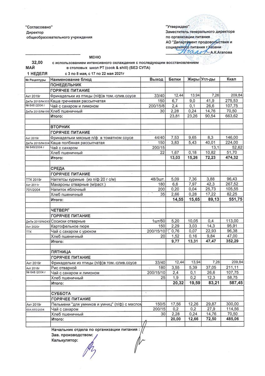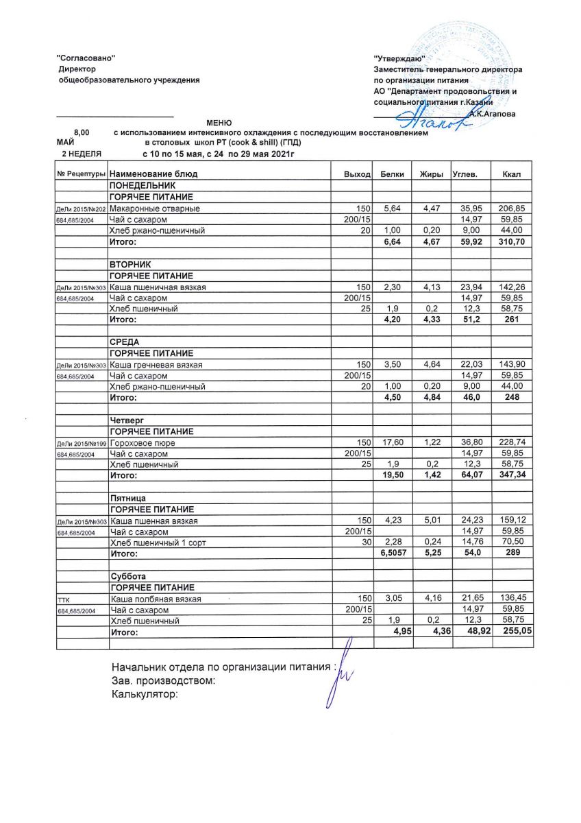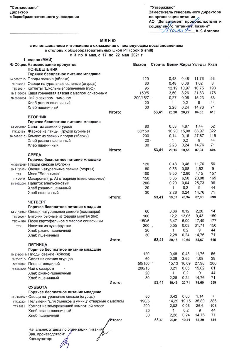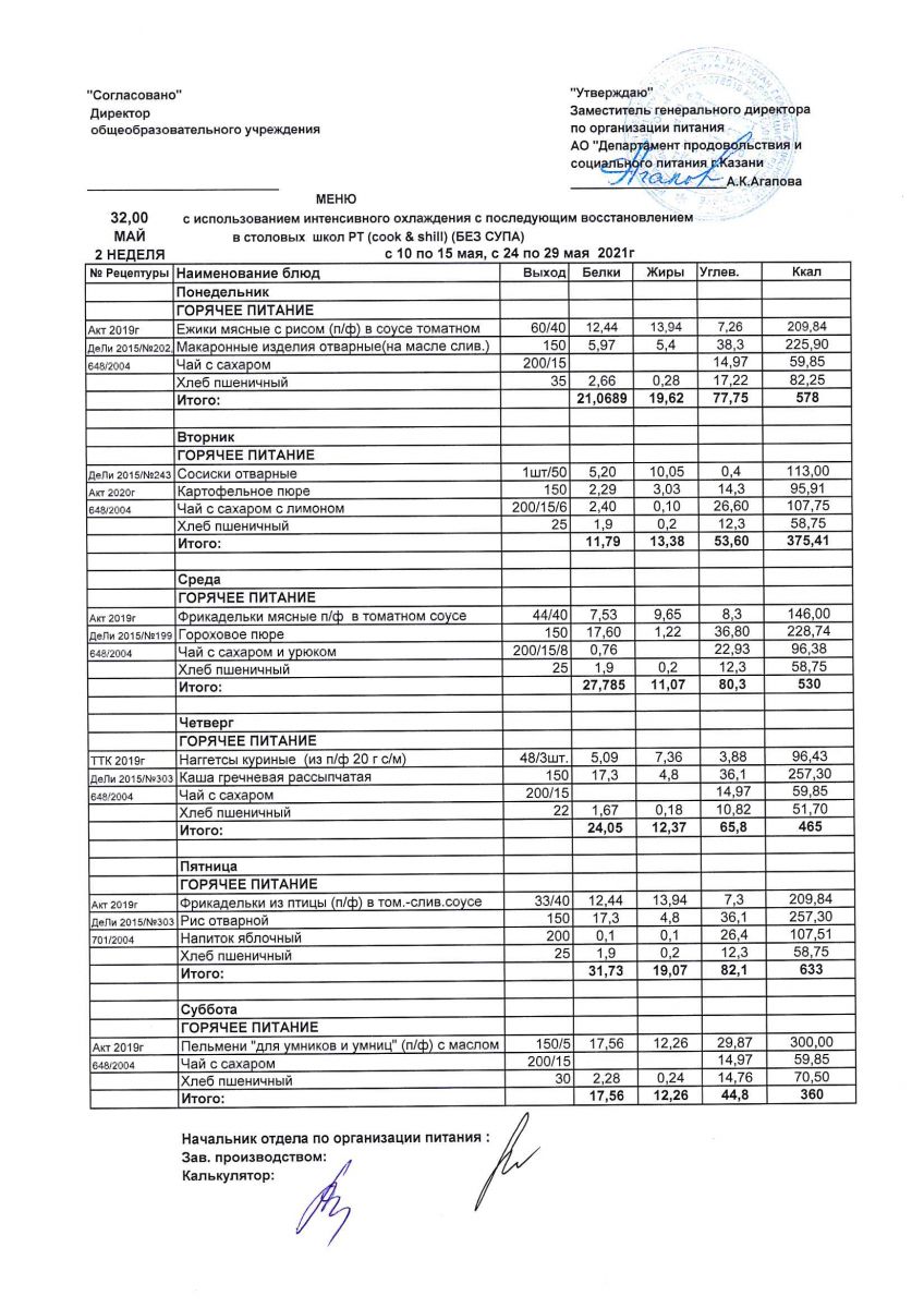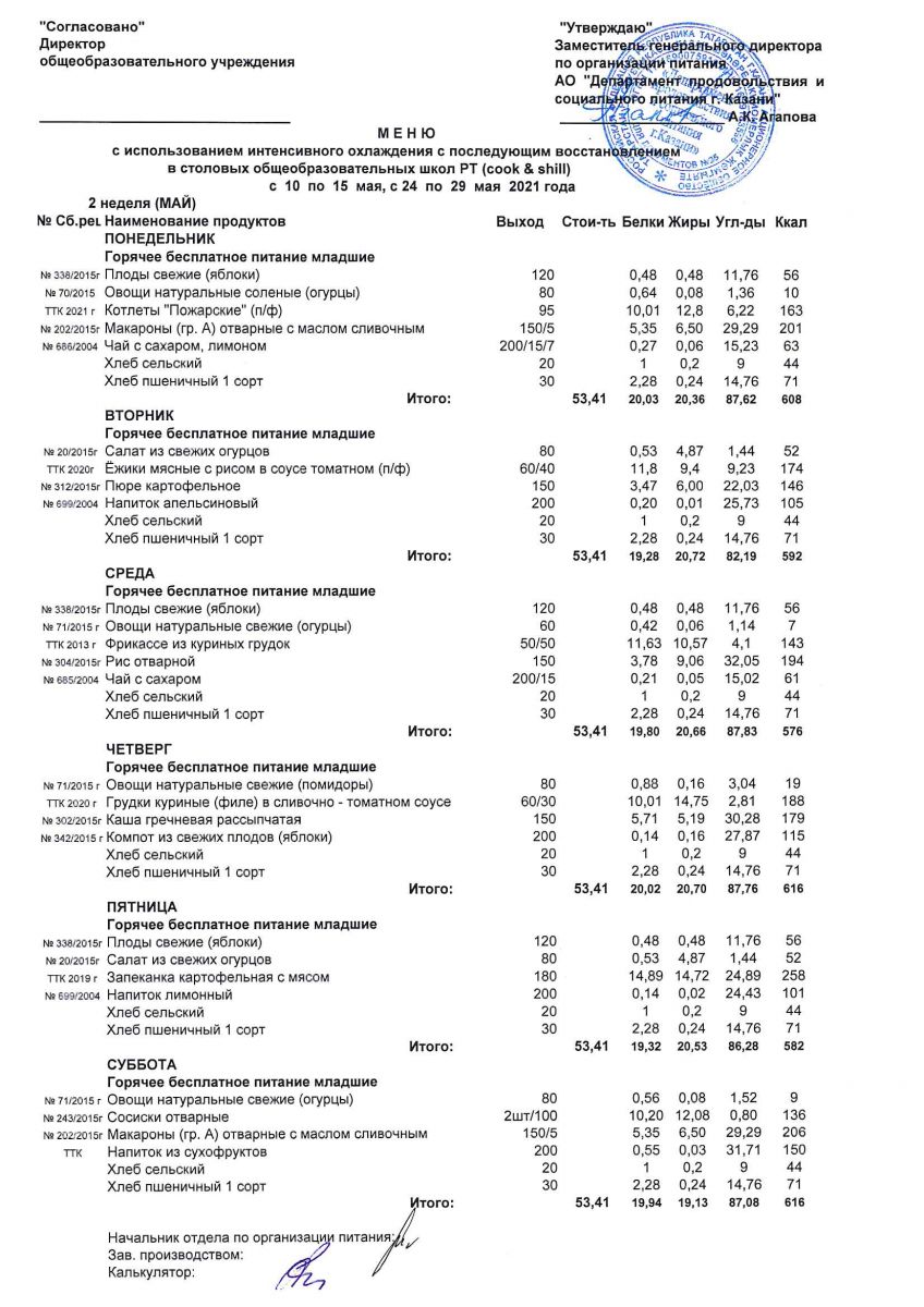 Меню на май. Четная неделя. Бесплатное питание для 5-11 классов.