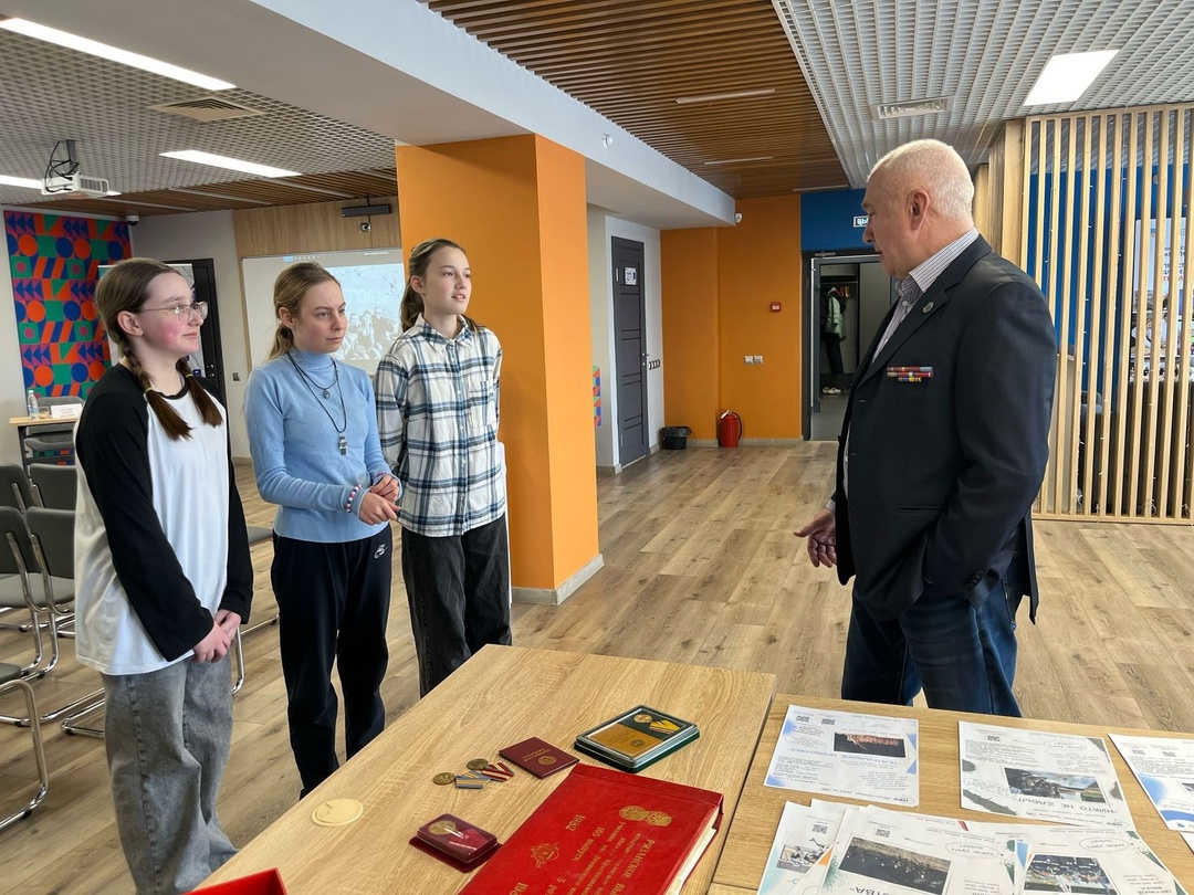 Накануне в молодежном центре «Белогорье» была организована встреча учащихся гимназии с председателем Совета ветеранов локальных войн и конфликтов, кавалером ордена Красной звезды Сергеем Ивановичем Косыревым, а также с ветераном боевых действий, сержантом Сергеем Михайловичем Голубевым.