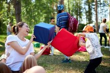 Поучаствовали в состязаниях, поиграли в традиционные игры Сабантуя: «Бег в мешках», «Перетягивание каната», «Чүлмәк вату», «Кашыкка йомырка куеп йөгерү» и другие татарские народные игры.