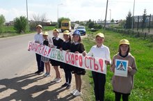 Отряд ЮИД МБОУ "Кирбинская СОШ" принял участие в акции "Снижаем скорость- сохраняем жизнь" 17.05.2021