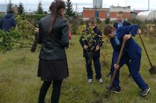 Сегодня в нашей школе учащиеся 7 класса вместе с классным руководителем и заведующим пришкольным участком посадили деревья. Всего было посажено 18 слив и 10 кустов смородины. В отделе лекарственных растений участка посадили топинамбуры.