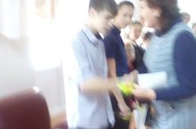 Директор школы Давлиева В.А. поздравила с днем рождения учащихся и вручила им сладкие подарки. Затем поблагодарила от имени Главы муниципального района и от себя лично всех сотрудников и воспитанников за подготовку и активное участие в мероприятиях, посвященных празднованию Дня города.
