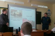Пожарной службе была посвящена вторая половина мероприятия. История становления службы в фильме и слайдах, рассказы о буднях МЧС увлекли ребят. С большим удивлением школьники узнали, что стоять на защите жизни и здоровья мирных жителей могут и люди с ограниченными возможностями здоровья. Было бы желание: а желание уже появилось. Также Федор Сергеевич напомнил о правилах безопасности на водных объектах, при обращении с огнем, при выездах на природу.