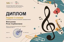 Поздравляем Фатыхову Розу Саубановну, преподавателя Лаишевской ДШИ, с победой в конкурсе профессионального мастерства "Маэстро" в номинации "Сольное исполнение" (народный вокал).