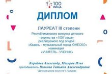 прошел в рамках проекта 100лица, посвященного 100 летию ТАССР. Лауреатом конкурса стал ансамбль народных инструмнтов Волкова Т.А.-Карабаев А.-Макаров И. (руководитель Волкова Т.А.)