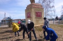 Җиңү бәйрәменә әзерләнәбез. Шул исәптән тыныч ториыш өчен сугыш кырыннан кайтмый калган бабайларыбыз хөрмәтенә төзелгән һәйкәл тирәсен җыештырдык.