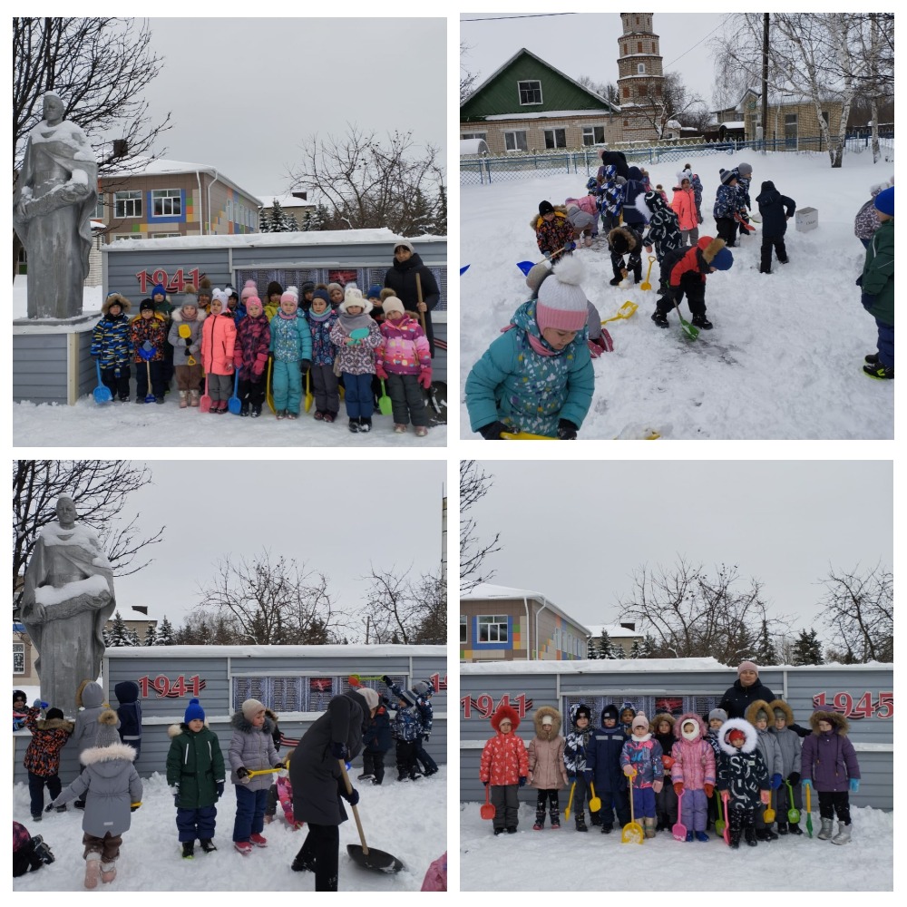 Затем провели операцию "Памятник". Где дети очищали территорию памятника неизвестному солдату от снега.