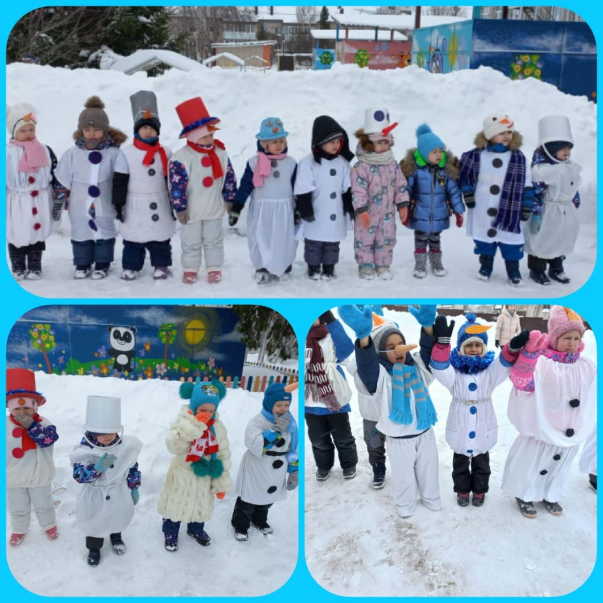 Снеговик - это символ русской зимы. Как только выпадает достаточно снега, ребятишки бегут во дворы лепить этого сказочного человека укутанного в шарф, с метелкой в руке и морковкой вместо носа.Особое творчество в создании образов Снеговиков проявили родители.На площадке детского сада был организован Парад Снеговиков, демонстрация костюмов, шутки, игры, танцы и песни. День Снеговика удался! Слышался смех, на лицах детей радость, удовольствие, восторг!