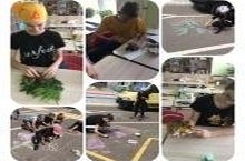 В пришкольном лагере труда и отдыха — день окружающей среды, дети рисовали на асфальте рисунки на тему «Природа родного края», также мастерили поделки из природного материала. 10.06.2021