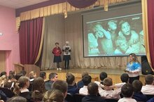 Волонтеры Победы и юнармейцы под руководством советника директора по воспитанию провели общешкольную линейку, где показали кинохронику про Сталинградскую битву.
