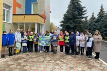 Зайнуллина Гульшат Айратовна и члены ЮИД "Перекрёсток" встречали родителей с детьми прямо у выхода из детского сада "Солнышко".