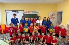 Активисты Движения Первых школы и детского сада поздравили всех дошкольных работников с профессиональным праздником, вручив им самодельные открытки. -