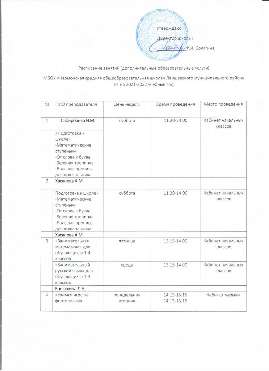 Расписание платных услуг на 2021-2022 учебный год