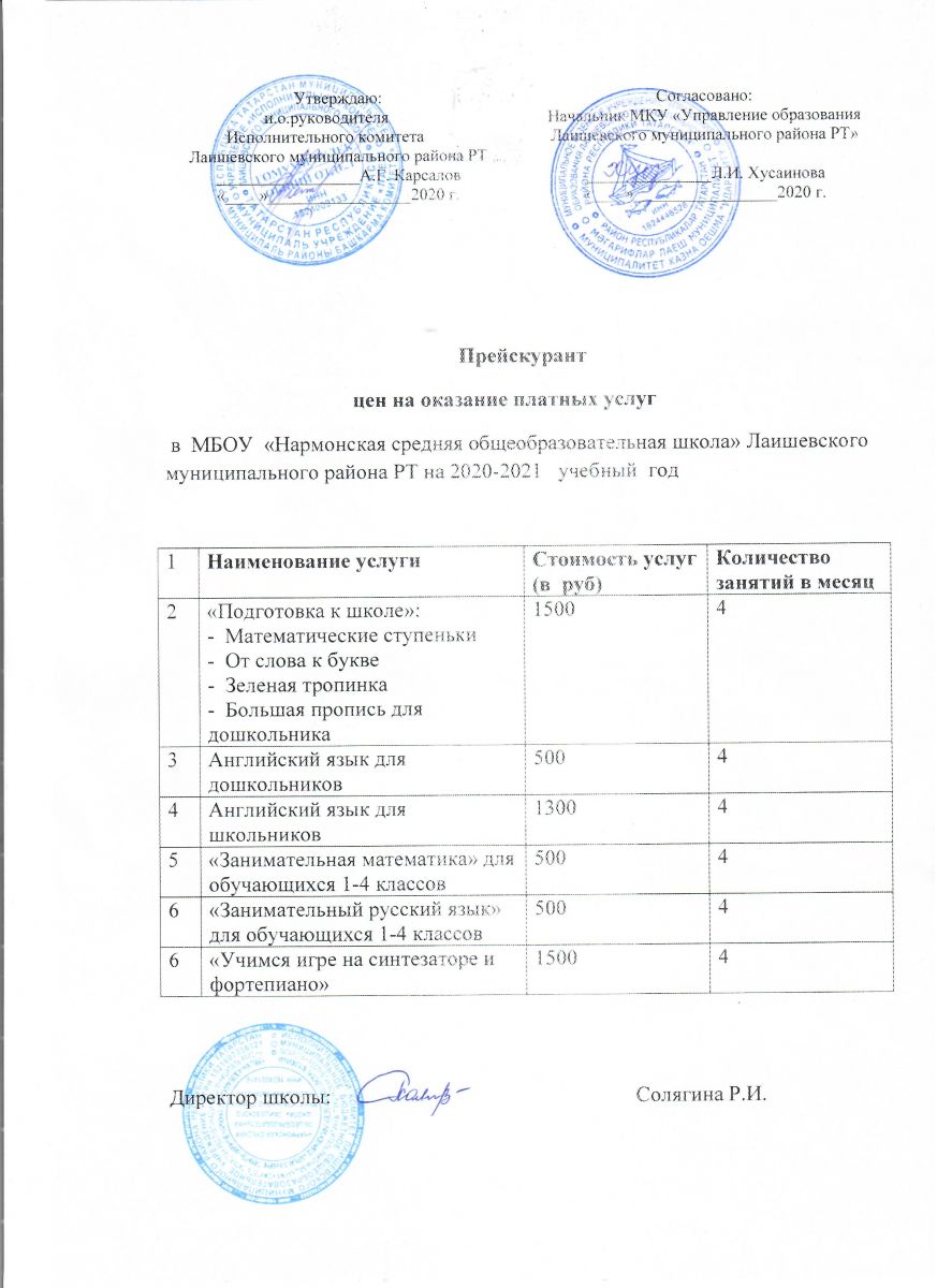 Прейскурант цен на 2020-2021 учебный год