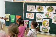 В рамках трека Орленок-Эколог для ребят Школы будущих первоклассников был проведен урок-практикум, они познакомились с экологическими знаками, повторили правила поведения в лесу и провели сортировку мусора.!!!