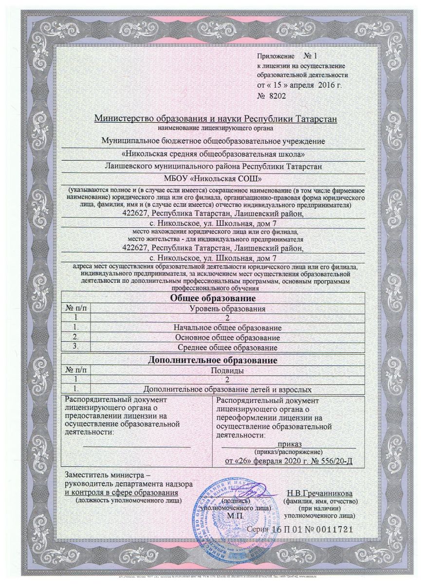 | Адрес: | 422627, Республика Татарстан, Лаишевский район, с. Никольское, ул. Школьная, д. 7 |