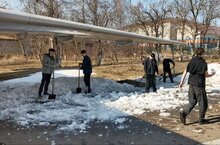 На уборку территории студенческого городка вышли студенты техникума. Навести порядок, убрать мусор и прошлогоднюю листву - такова задача на эти весенние дни.