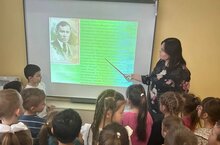 Воспитатели познакомили детей с непростой судьбой поэта: рассказали о его детстве, творчестве и подвиге в годы войны. Для наглядности ребятам показали фотографии и презентацию.