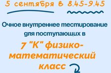 состоится очное внутреннее тестирование для поступающих в 7К физико-математический класс.