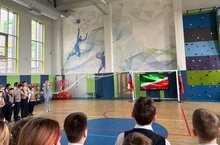 Школьная учебная неделя началась с традиционного выноса флагов Российской Федерации и Республики Татарстан.