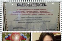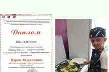 Воспитатель по обучению татарскому языку Абдрахманова Фирая Шамиловна и воспитанник детского сада Абдрахманов Карим стали лауреатами II степени Республиканского творческого конкурса «Солнечное детство» в номинации «Приятного аппетита»