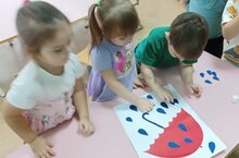 Во 2 младшей группе "Звёздочки" прошло занятие по рисованию по мотивам сказки «Рукавичка». Ребята вспомнили героев сказки и ее сюжет. Предложила детям нарисовать ту самую вместительную рукавичку, которую обронил герой сказки. Ребятам очень понравилась идея - нарисовать узоры на готовом силуэте рукавички, используя нетрадиционную технику рисования - пальчиками. Процесс рисования детям очень понравился, ведь они воспроизводили на листе именно свою задумку, а развитие воображения – одна из главных задач занятий по рисованию.