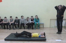 Подготовка учеников к сдаче ГТО. Сегодня ученики 6 класса тренировались по поднятию туловища из положения лежа на спине. 28.01.2015