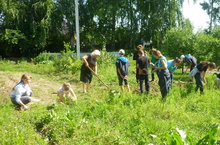 Второй день работы пришкольного лагеря труда и отдыха. Решили привести в порядок пришкольный участок. 02.07.2014