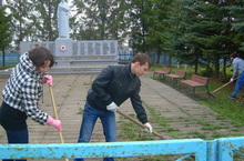 К Дню Победы. Ученики 10-11 классов провели субботник на территории парка "Славы" около памятника погибшим войнам в годы Великой Отечественной войны 26.04.2012