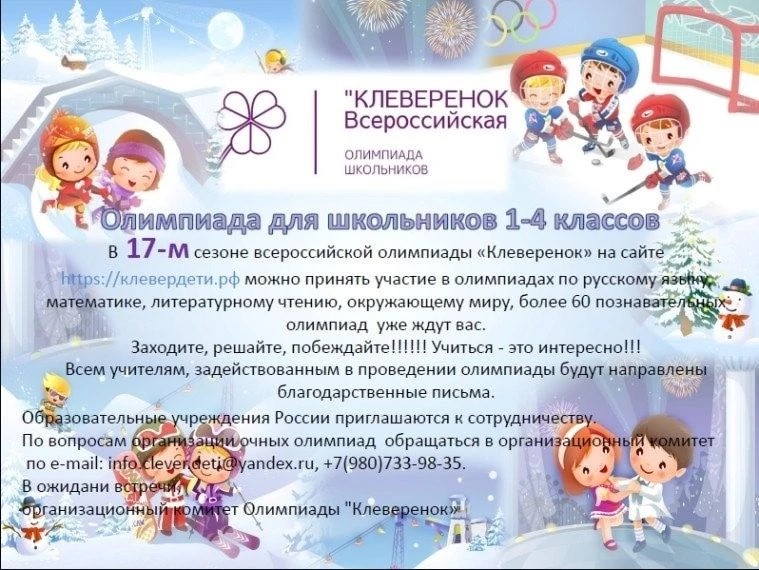 Приглашаем школьников 1-4 классов принять участие во всероссийской развивающей олимпиаде «Клеверенок»