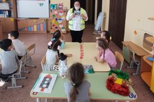 Занятия посетила ведущий специалист отдела профилактики территориального управления в ГБУ «Безопасность дорожного движения» -Зайнуллина Гульшат Айратовна. Она пообщалась с детьми всех групп и вручила им световозвращающие элементы.