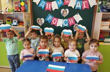 Утро этого дня было насыщено, с большим нетерпением ребята готовились к празднику – украшали группы, прогулочные веранды и себя символикой Российского флага.
