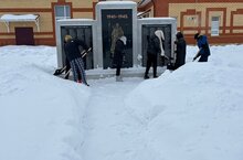 Операция «Обелиск», учащиеся 9 класса расчистили территорию памятника от снега .
