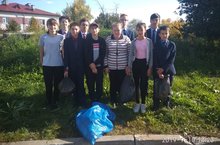 В рамках осенней недели добра и акции "Добрая Земля" учащиеся 7-8 классов вышли на уборку пришлкольной территории