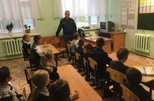 В День Гражданской Обороны сотрудник пожарной охраны провел беседу с учащимися начальных классов и показал мультфильм