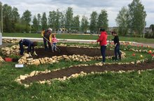 Коллектив и учащиеся МБОУ Пелевская СОШ начали посадку цветов для благоустройства территории школы.