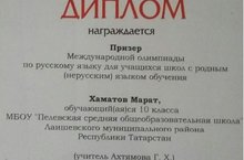 III Международная олимпиада по русскому языку обучающихся родным (нерусским) языком обучения 10.06.2016