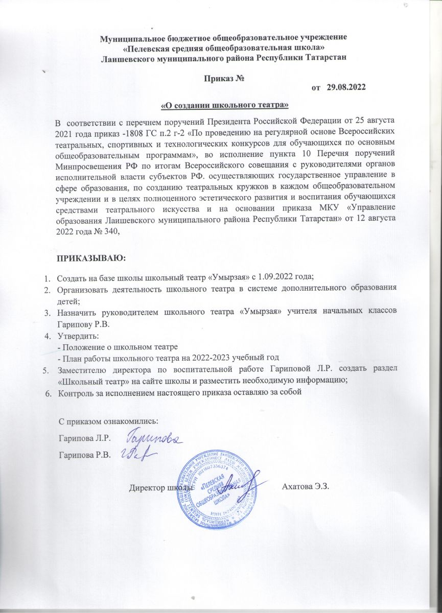 Приказ о создании школьного театра