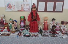 На выставке показаны куклы в национальных костюмах.